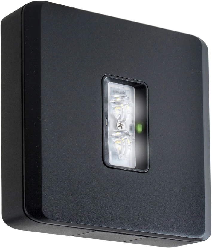 Noodverlichtingsarmatuur Evago Decentraal 2 watt ontworpen voor montage tot 4 meter, zwartcontinu wandopbouw led armatuur + DALI controlebouwsteen,serie Evago. Lichtspreiding: spot (S)