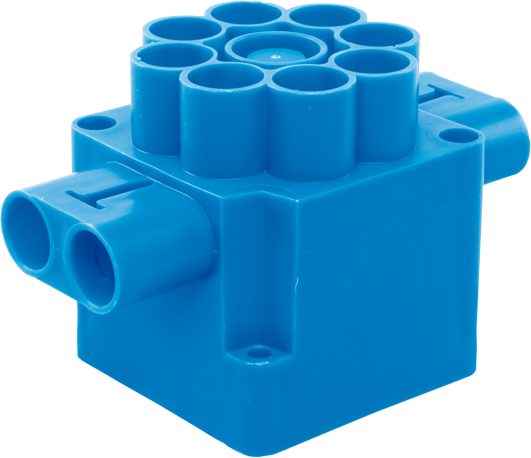 Centraaldoos geschikt voor plafondplaten met 13 x 16/19 mm buisinvoer en mogelijkheid voor buisvergrendeling in de tuiten aan de zijkanten. Ook geschikt voor pen- en plugbevestiging voor bekisting. Zonder deksel. |