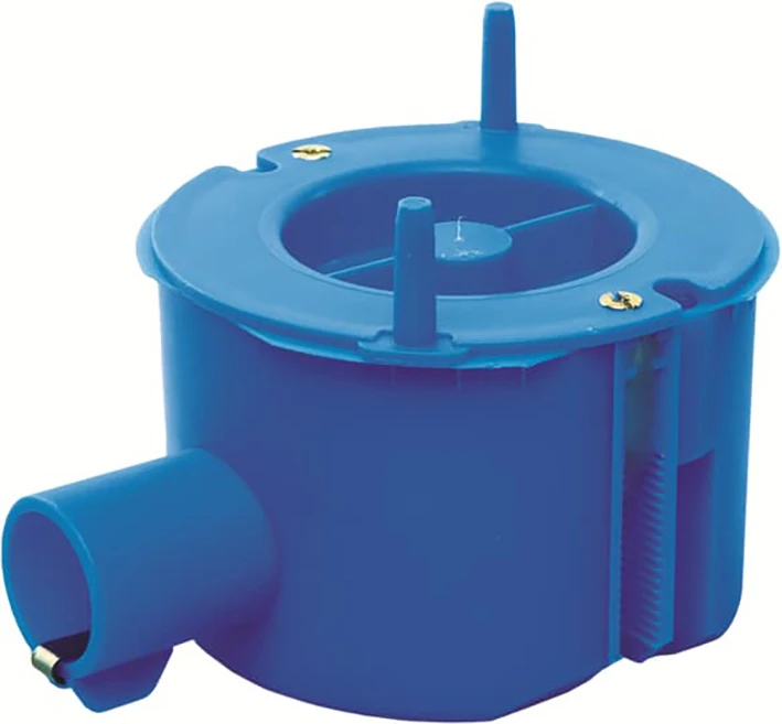 Inbouwdoos voor 16A perilexmateriaal met buisinvoer 19 mm en buisvergrendeling d.m.v. klemveer. Voorzien van aangespoten pennen voor de gietbouw. |