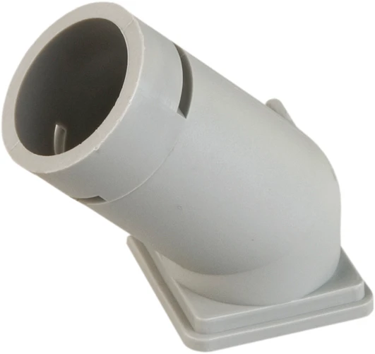 Inzetstuk voor inbouwdozen 190 en 196 met buisinvoer 16 mm, gebogen onder 45° met mogelijkheid voor buisvergrendeling. |