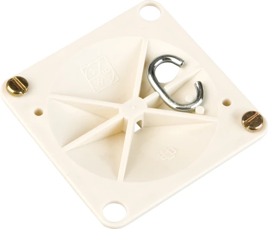 Deksel voor vierkante centraaldozen met ophanghaak en schroeven. |