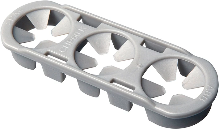 Toebehoren/onderdelen voor dozen voor montage in de wand/plafond Hafobox Trekontlasting voor gebruik van flexibele snoeren met CHP 60 doos in stekerbare installaties. Eén trekont- lasting voor 3 invoeren naast elkaar.