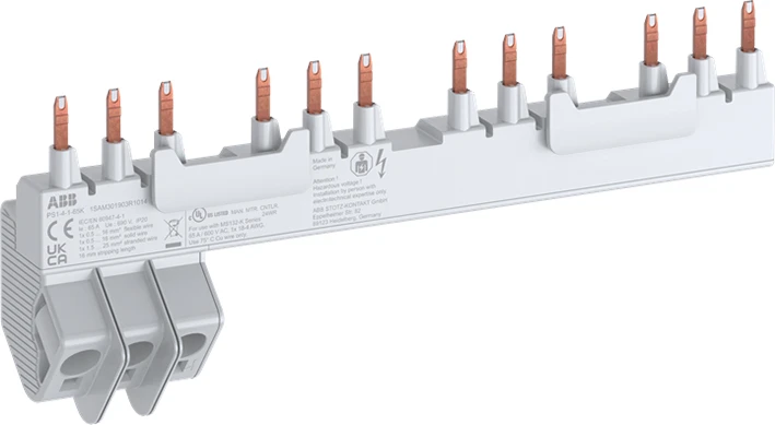PS1-4-1-65K 3-fasen-verzamelrail maakt een eenvoudige en snelle parallelle aansluiting mogelijk van 4x MS132-K handbediende motorstarters + 1 zijhulpcontact, zonder gereedschap, door de rail simpelweg in de klemmen te drukken. Het voedingsblok is geïntegreerd in de verzamelrail, wat logistiek en planning optimaliseert door het aantal benodigde onderdelen te verminderen. De nominale stroom is 65 A. PS1-K verzamelrails zijn gecertificeerd voor UL Type E- en Type F-toepassingen. |