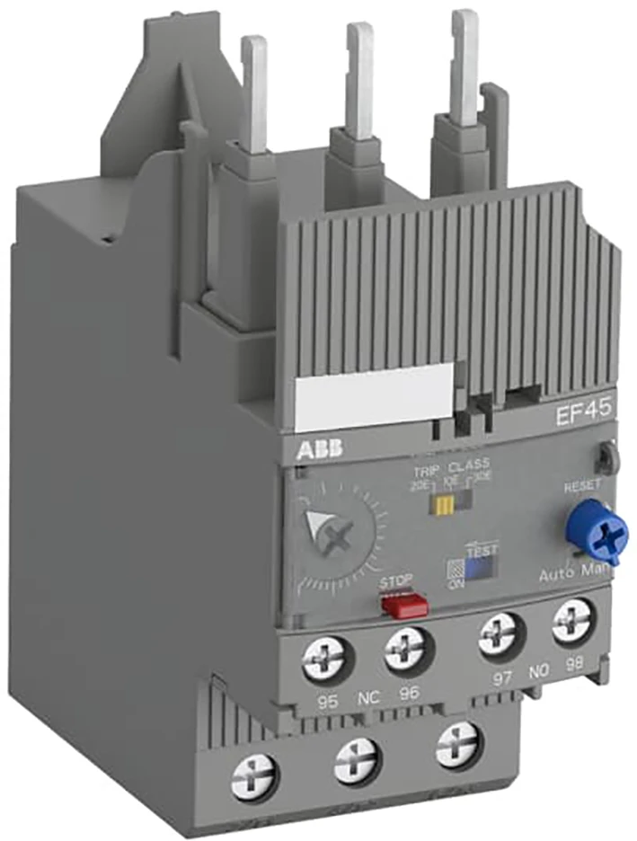 De EF45-45 is een zelfgevoed elektronisch overbelastingsrelais; er is geen extra externe voeding nodig. Het biedt betrouwbare en snelle bescherming voor motoren bij overbelasting of fasenuitval. Even eenvoudig te gebruiken als een thermisch overbelastingsrelais en compatibel met standaard motortoepassingen. Het elektronisch overbelastingsrelais overtuigt vooral door het ruime instelbereik, de hoge nauwkeurigheid, het brede bedrijfstemperatuurbereik en de mogelijkheid om een uitschakelklasse te selecteren (10E, 20E, 30E). Verdere kenmerken zijn temperatuurcompensatie, uitschakelcontact (NC), signaalcontact (NO), selecteerbare automatische of handmatige reset, trip-free mechanisme, STOP- en testfunctie en een uitschakelindicatie. De overbelastingsrelais worden rechtstreeks op de contactoren aangesloten. Enkelvoudige montagesets zijn als toebehoren verkrijgbaar. De EF19 en EF45 hebben ATEX- en IECEx-certificering 1). 1) ATEX is geldig voor producten geproduceerd vanaf week 42, 2014. IECEx is geldig voor producten geproduceerd vanaf week 15, 2017. |