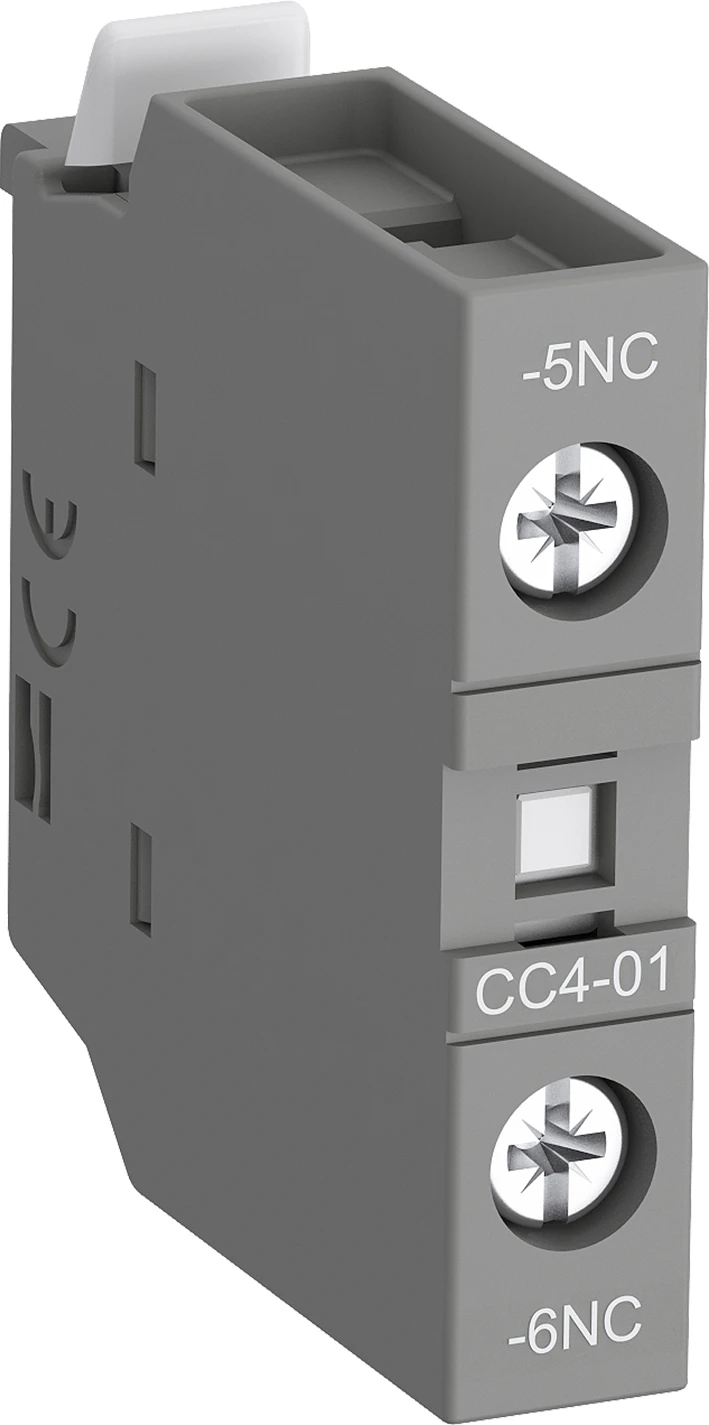 CC4-01 is een 1-polig frontgemonteerd hulpcontactblok met schroefklemmen en kan worden gemonteerd op AF(C)09(Z)(B)...96 magneetschakelaars en NF(C)(Z)(B) contactorrelais. CC4-01 is leverbaar met één vertragend verbreekcontact (N.C.) voor standaard industriële omgevingen. |