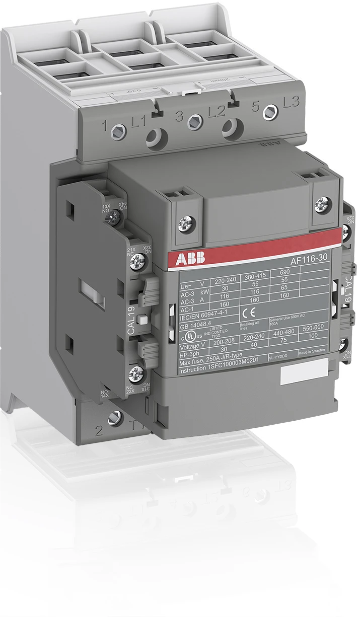 De AF116-30-22-12 is een 3-polige contactor – 690 V IEC of 600 V UL – met voorgemonteerde hulpcontacten en dubbele klem. Hij schakelt motoren tot 55 kW / 400 V AC (AC-3) of 75 pk / 480 V UL en vermogenskringen tot 160 A (AC-1) of 160 A UL general use. Dankzij de AF-technologie heeft de contactor een breed stuurspanningsbereik (48–130 V, 50/60 Hz en DC), kan hij grote variaties in stuurspanning aan, verlaagt hij het energieverbruik in panelen en zorgt hij voor betrouwbare werking in instabiele netwerken. Bovendien is overspanningsbeveiliging geïntegreerd, wat een compacte oplossing biedt. AF-contactoren hebben een bloktype-ontwerp, zijn eenvoudig uit te breiden met aanvullende hulpcontactblokken en met een breed assortiment accessoires. |