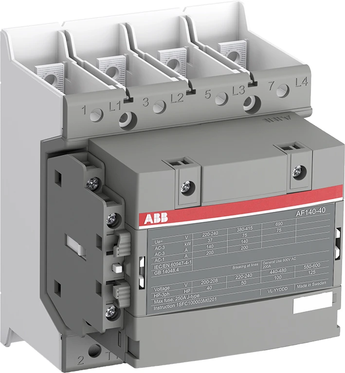 De AF116-40-11B-13 is een 4-polige contactor, 690 V IEC of 600 V UL, met voorgemonteerde hulpcontacten en hoofstroomrails. Geschikt voor het aansturen van motoren tot 55 kW / 400 V AC (AC-3) en voor het schakelen van vermogenskringen tot 160 A (AC-1) of 160 A UL algemeen gebruik. Dankzij de AF‑technologie beschikt de contactor over een breed besturingsspanningsbereik (100–250 V 50/60 Hz en DC), kan hij grote variaties in besturingsspanning opvangen, verlaagt hij het energieverbruik in de schakelkast en zorgt hij voor betrouwbare werking in instabiele netwerken. Bovendien is overspanningsbeveiliging ingebouwd, wat een compacte oplossing biedt. AF-contactoren hebben een bloktype-ontwerp en zijn eenvoudig uit te breiden met hulpcontactblokken en een breed assortiment accessoires. |