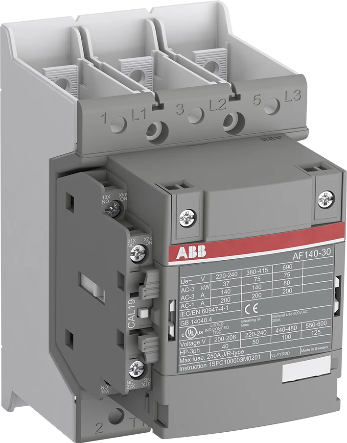 De AF140-30-11B-12 is een 3-polige contactor – 690 V IEC of 600 V UL – met voorgemonteerde hulpcontacten en hoofdstroomrails. Geschikt voor het schakelen van motoren tot 75 kW / 400 V AC (AC-3) of 100 hp / 480 V UL en voor het schakelen van vermogenskringen tot 200 A (AC-1) of 200 A UL algemeen gebruik. Dankzij de AF-technologie heeft de contactor een breed stuurspanningsbereik (48–130 V, 50/60 Hz en DC), kan grote variaties in de stuurspanning opvangen, vermindert het energieverbruik in het paneel en zorgt voor betrouwbare schakelingen in instabiele netwerken. Bovendien is overspanningsbeveiliging geïntegreerd, wat een compacte oplossing biedt. AF-contactors hebben een blokbouwontwerp en zijn eenvoudig uit te breiden met hulpcontactblokken en een breed assortiment aan accessoires. |