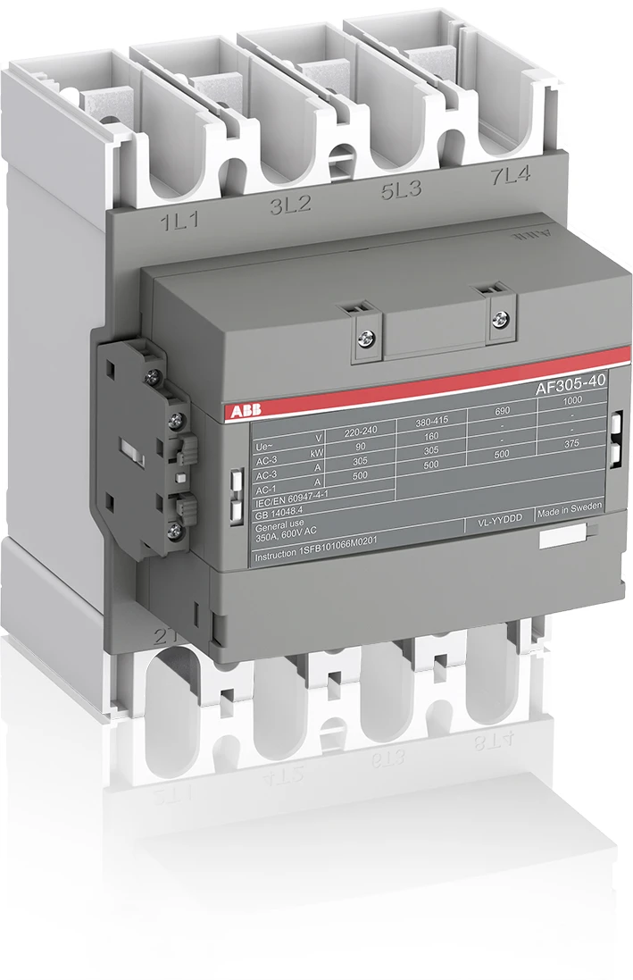 De AF305-40-11-11 is een 4-polige contactor voor 1000 V IEC of 600 V UL, met voorgemonteerde hulpcontacten en hoofdstroomrails. Geschikt voor het schakelen van motoren tot 160 kW / 400 V AC (AC-3) en voor het schakelen van stroomkringen tot 500 A (AC-1) of 350 A UL general use. Dankzij AF‑technologie beschikt de contactor over een breed stuurspanningsbereik (24–60 V AC 50/60 Hz en 20–60 V DC), vangt hij grote variaties in stuurspanning op, verlaagt hij het energieverbruik in het paneel en zorgt hij voor betrouwbare werking in instabiele netten. Daarnaast is overspanningsbeveiliging geïntegreerd voor een compacte oplossing. AF-contactoren hebben een blokontwerp en zijn eenvoudig uit te breiden met aanbouw-hulpcontactblokken en een breed assortiment accessoires. Inclusief montageset met alle benodigde schroeven, ringen en moeren voor het aansluiten van de klemmen, en schroeven voor de montage van het apparaat. |