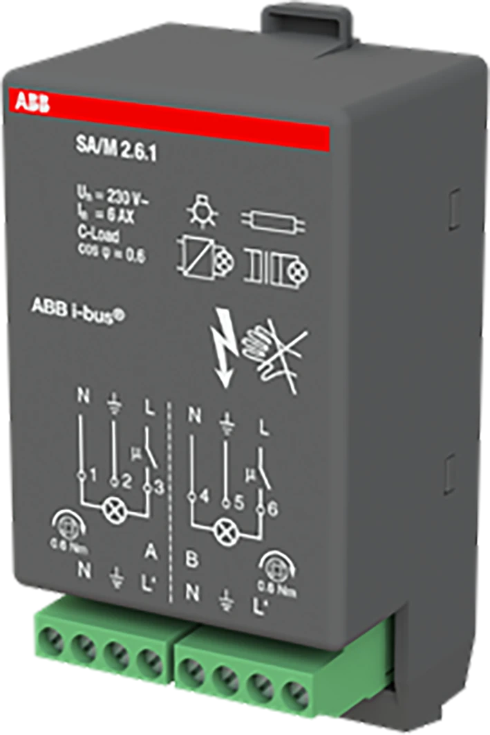 KNX schakelaktormodule, 230 V AC, 2x 6 A, module voor het insteken in het ruimtecontroller-basisapparaat. |