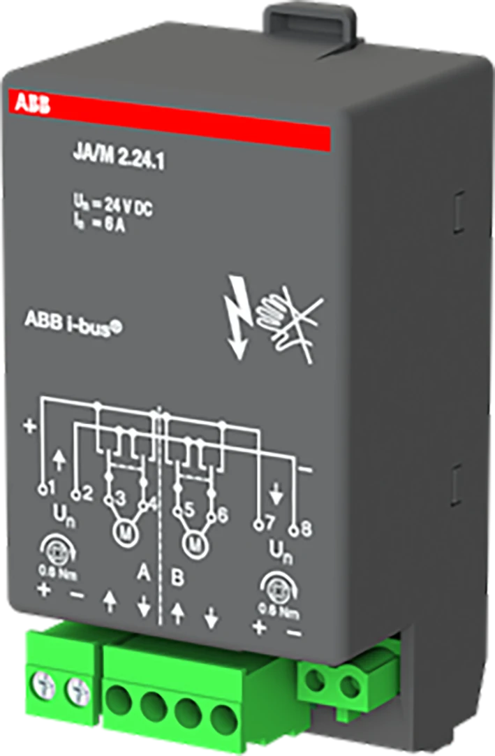 KNX jaloezie aktormodule, 2-voudig, 2 x 24V DC, module voor het insteken in het ruimtecontroller-basisapparaat. |