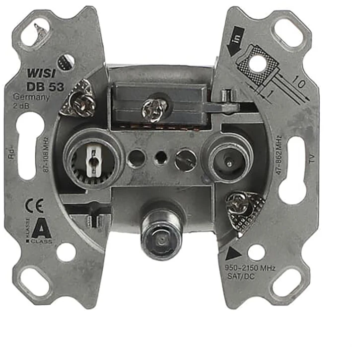 AntennecontactdoosInbouwsokkel radio/TV/SAT 3 aansluitingen/sternet. |