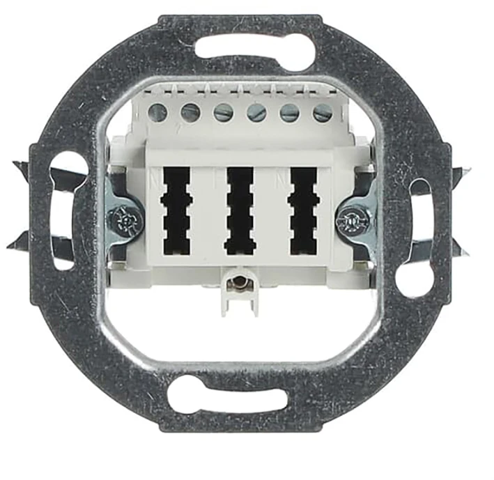 Inbouwsokkel voor datacommunicatie, TAE, voor 1 telefoon en 2 andere apparaten of 2 data-apparaten (bijvoorbeeld fax, antwoordapparaat, modem, enz.), 3 x 6-polig voor 1 netlijn, alpinwit. |