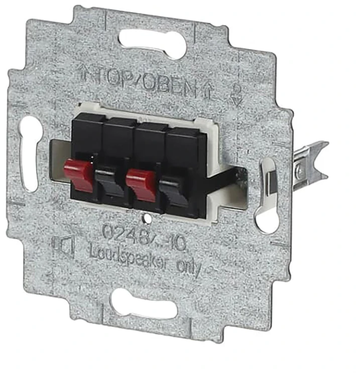 Inbouw stereoluidsprekercontactdoos, met steekklemmen (achterzijde met schroefaansluitklemmen), met 4 aansluitklemmen, zwart. |