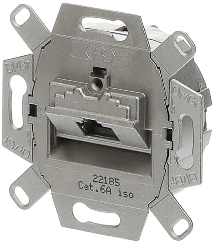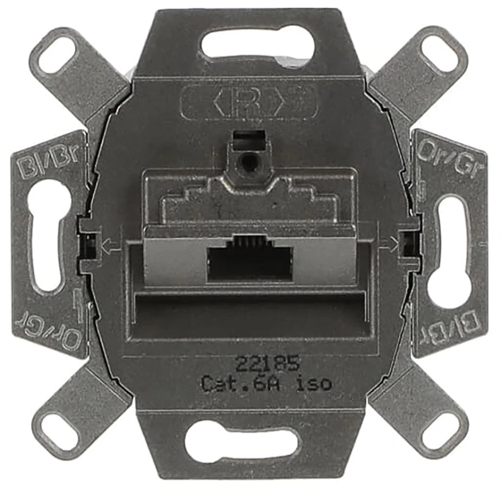 Inbouwsokkel voor datacommunicatie. RJ45, cat. 6A iso, afgeschermd, 1 connector, 8 (8)-polig. Met schuine uitvoer en LSA-snijklemmen. RJ45-aansluitingen voor netwerken volgens cat. 6A, Class EA (10 Gbit/s / 500 MHz). |