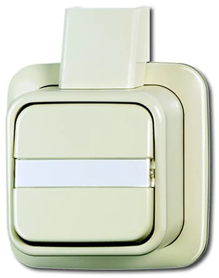 Opbouw wipschakelaar, wissel, met 51 x 10 mm tekstveld, met adapter voor platte buis K/P-25, met montageplaat 2609 APJ, 10 AX, 250 V AC, AP creme. |