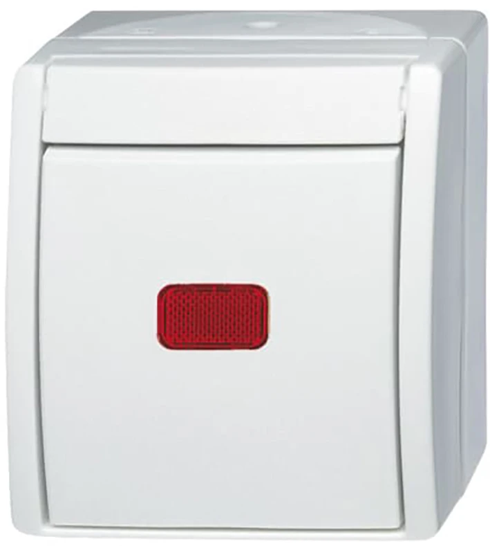 Opbouw wipcontroleschakelaar, wissel, IP44, 10 AX, 250 V AC, ocean-alpinwit. |