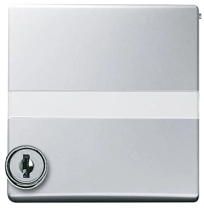 Verloopplaat met klapdeksel voor de opname van centraalplaten uit het programma Busch-Duro 2000® SI en Reflex SI, afsluitbaar met sleutel, met tekstveld 66,7 x 10 mm, IP44, All-weather aluzilver. |
