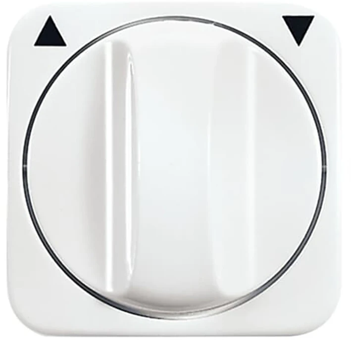 Centraalplaat met draaigreep als afdekking voor inbouwjaloezieschakelaar/-impulsgever, R-alpinwit. |