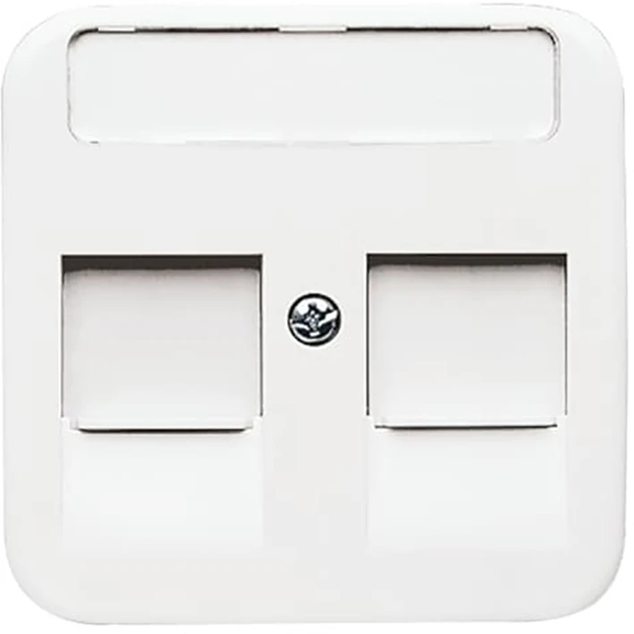 Centraalplaat als afdekking voor draagring met 2 Modular Jack connectors, met schuifjes, met 41,5 x 10 mm tekstveld, R-alpinewit. |