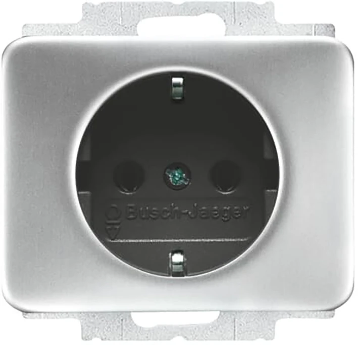 Inbouw wandcontactdoos met randaarde, zonder bevestigingsklauwtjes, a-titanium. |