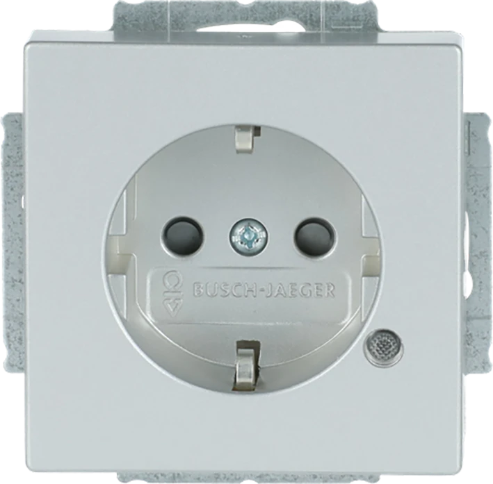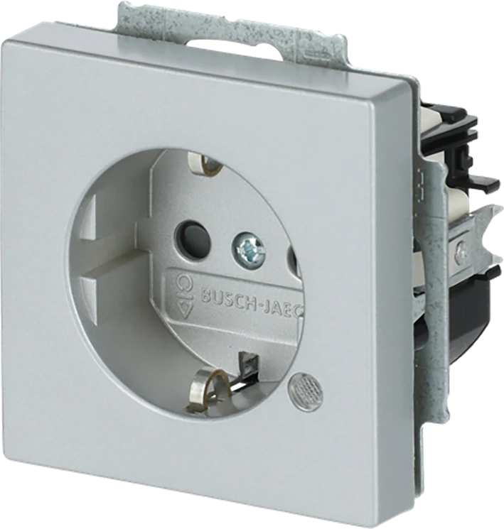 Inbouw wandcontactdoos met randaarde, met verhoogde aanraakbeveiliging, met groene bedrijfs-LED, f-aluzilver. |