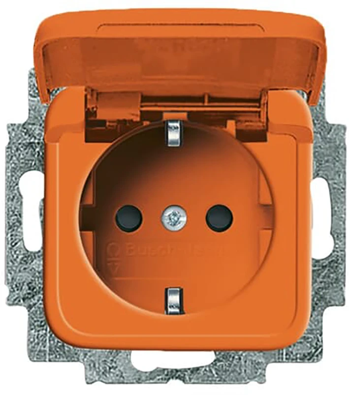 Inbouw wandcontactdoos met randaarde, met verhoogde aanraakbeveiliging, met klapdeksel, oranje SI. |
