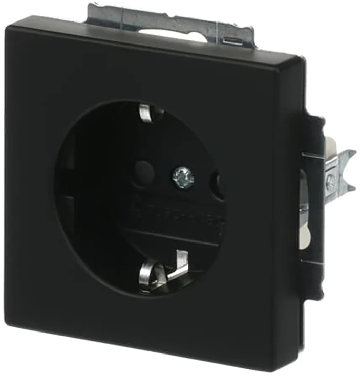 Inbouw wandcontactdoos met randaarde, met verhoogde aanraakbeveiliging, f-matzwart. |