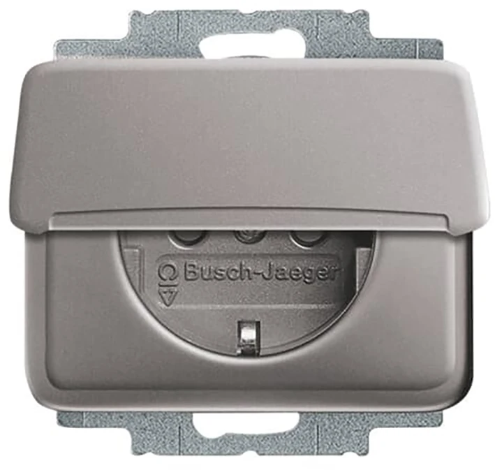 Inbouw wandcontactdoos met randaarde, met klapdeksel, a-platin. |
