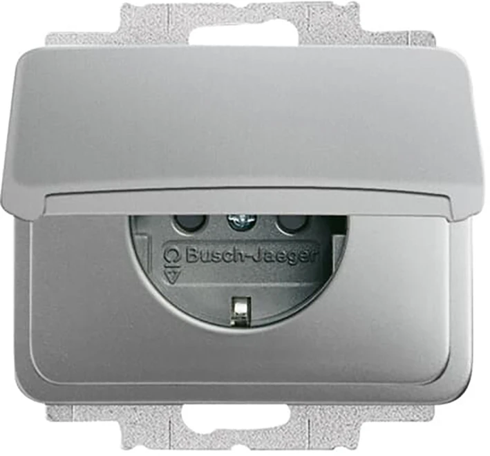 Inbouw wandcontactdoos met randaarde, met klapdeksel, a-titanium. |