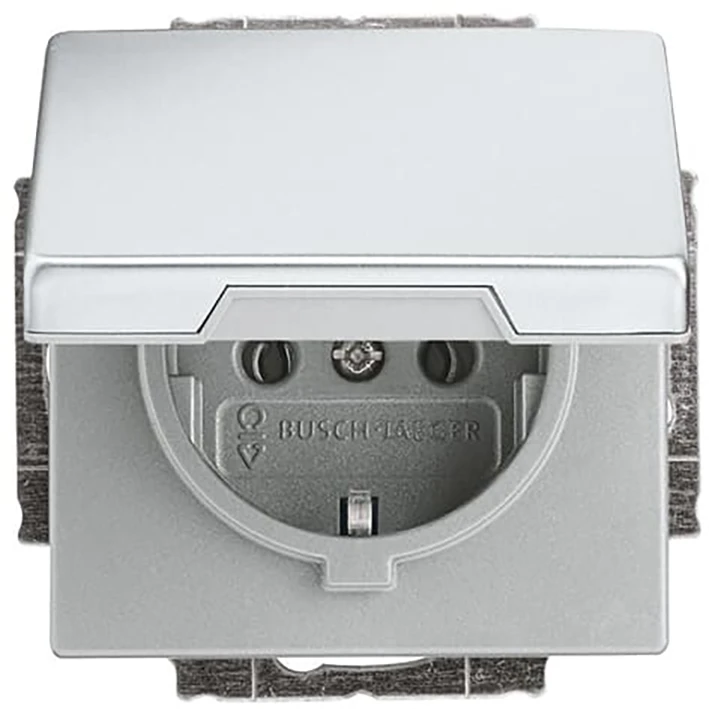 Inbouw wandcontactdoos met randaarde, met klapdeksel, pure-rvs. |