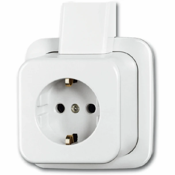 Opbouw wandcontactdoos met randaarde, met schroefklemmen, met adapter voor platte buis K/P-25, met montageplaat 2609 APJ, AP alpinwit. |