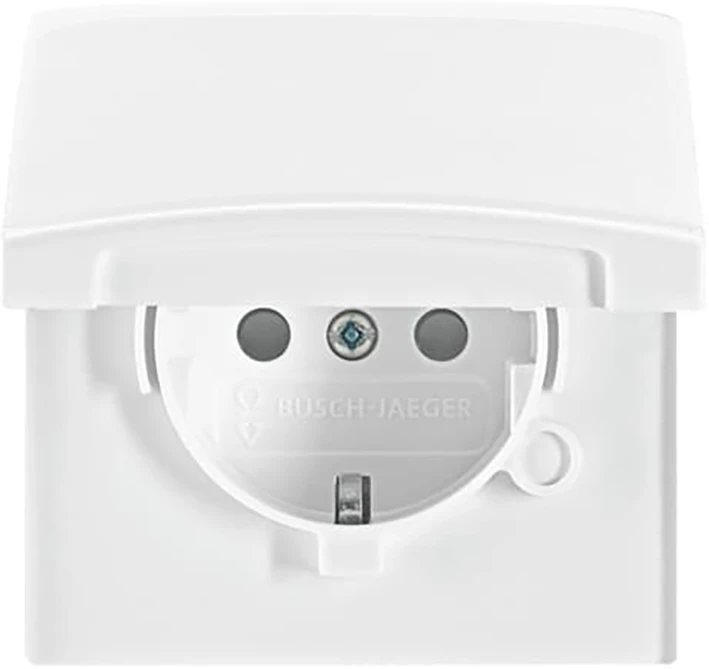 Inbouw wandcontactdoos met randaarde, met verhoogde aanraakbeveiliging, met klapdeksel, IP44, All-weather alpinwit. |