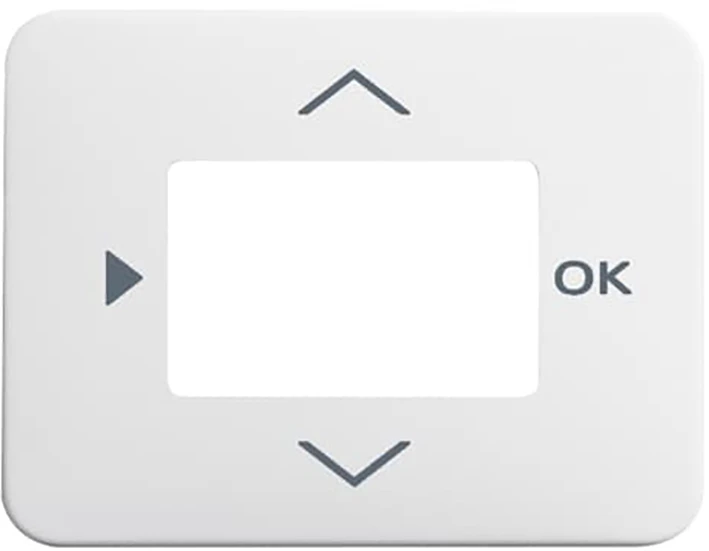 Centraalplaat voor comforttimerbedieningselement 6455-101, standaardtimerbedieningselement 6456-101, kamerthermostaat 1098 U(F)-101, countdowntimer 6465 U-101 en ruimteluchtsensor CO2 1091 U, a-albast/studiowit. |