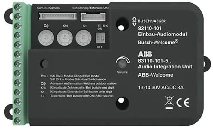 Busch-Welcome® inbouw audiomodule, voor integratie in brievenbus- en beldrukkerpanelen van verschillende fabrikanten. |