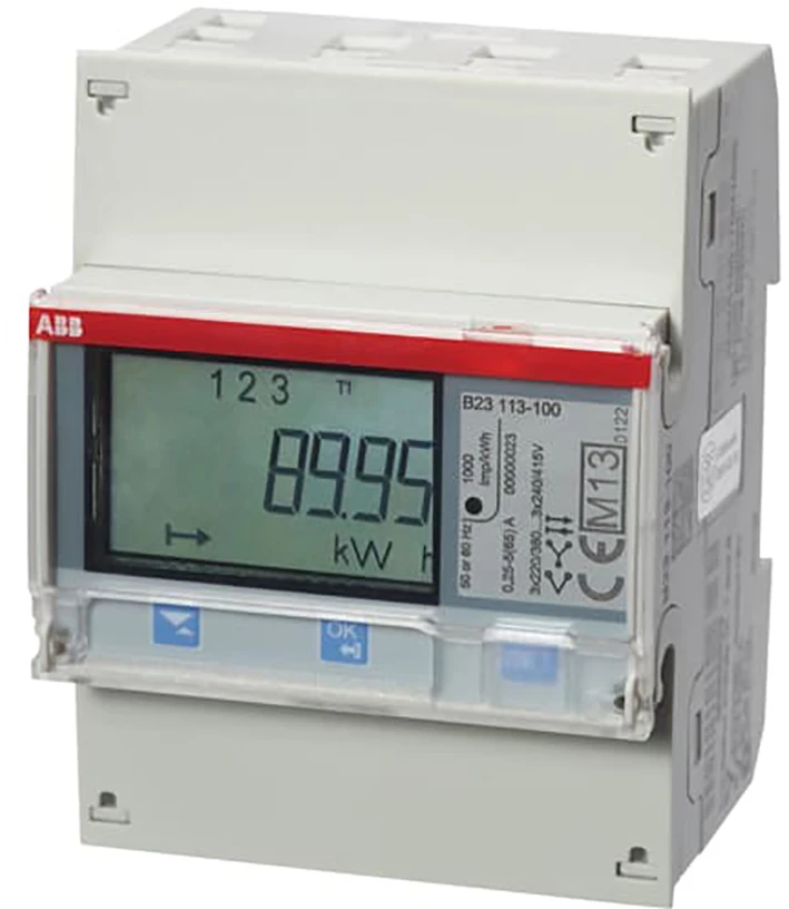| Omschrijving | Energiemeter 3f direct 65A, 230/400V AC klasse B, puls uitgang, MID M-bus |