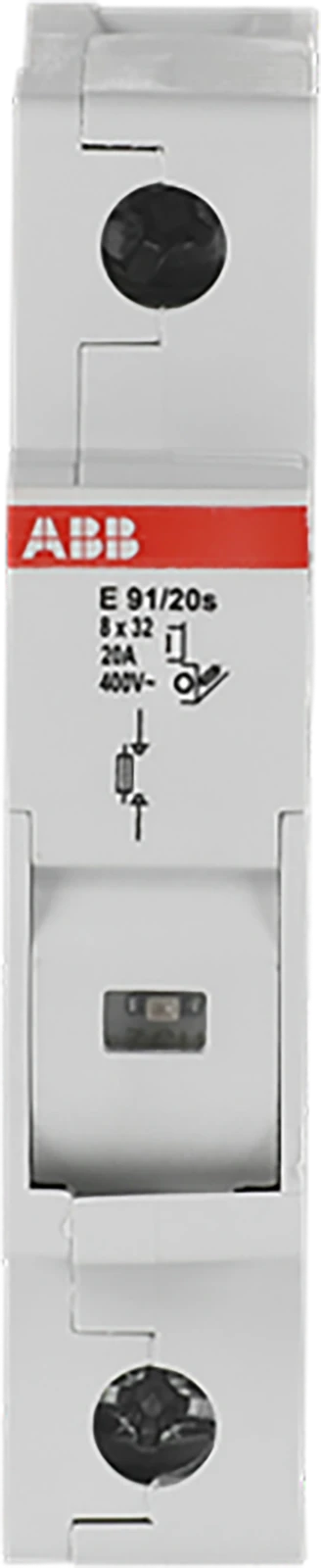 E 91/20S is een zekeringhouder voor overstroom- en kortsluitbeveiliging, met indicatie voor doorgebrande zekering. |
