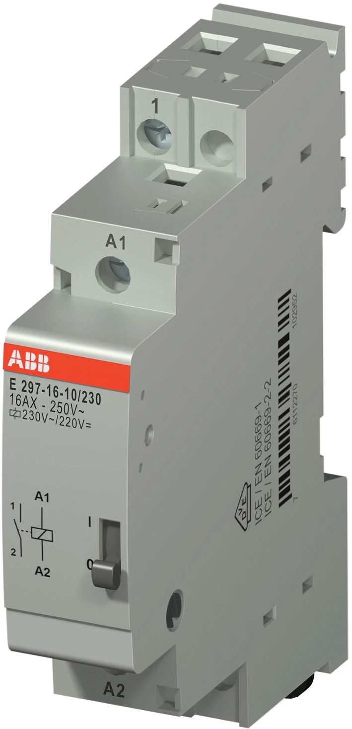 Installatierelais zijn elektromagnetisch bediende minicontactoren met een DIN-standaardbreedte van 18 mm. Met deze ABB installatierelais E297 kan een betrouwbaar besturingssysteem worden gerealiseerd. Ze worden vooral toegepast in industriële installaties, maar ook in commerciële en openbare gebouwen. In de regel worden installatierelais, bediend via een bedieningsschakelaar (vergrendeld contact), geplaatst waar verlichting, een airconditioningsysteem, een ventilator of iets dergelijks moet worden geschakeld. Installatierelais worden ook wel monostabiele schakelrelais of 2-polige minicontactoren genoemd. De term “monostabiel” betekent dat via een bedieningsschakelaar (vergrendelde bediening) een inschakelcommando naar de spoel moet worden gestuurd om de magneetspoel te bekrachtigen. Het anker van de spoel trekt aan en sluit of opent de hoofdcontacten. Het apparaat blijft in de aan-stand zolang de stuurspanning op de spoel wordt aangelegd. Wordt de spanning naar de spoel onderbroken, dan keert het installatierelais altijd terug naar de ruststand (uit-stand). Installatierelais en het toebehoren zijn verkrijgbaar in verschillende uitvoeringen om eenvoudig aan uiteenlopende marktvereisten te voldoen. Dankzij de optimale schakelcapaciteit zijn ze ook geschikt voor gebruik in industriële omgevingen en in situaties waarin zwaardere verbruikers moeten worden geschakeld (zoals bijvoorbeeld meervoudige verlichtingssystemen). Een geoptimaliseerde spoel (laag verliesvermogen = lagere bedrijfstemperatuur) zorgt voor een zuivere en veilige werking in de elektrische verdeelinrichting. |