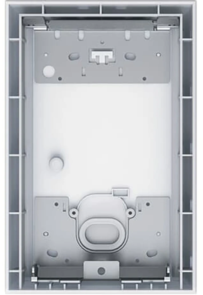 ABB Busch-Welcome opbouwbak, 2 modules, grootte 1/2, voor opbouwmontage van een 135 mm brede ABB Busch-Welcome buitenpost, IP54, aluminium grijs. |