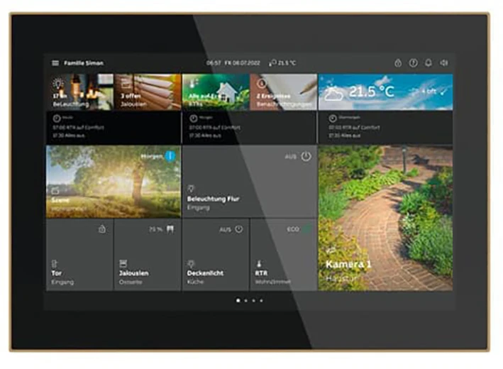 KNX en FaH 10" touchdisplay, meld- en controle-eenheid. Ook te gebruiken als video-binnenpost voor het deurcommincatiesysteem Busch-Welcome®, zwart/satinegoud. |
