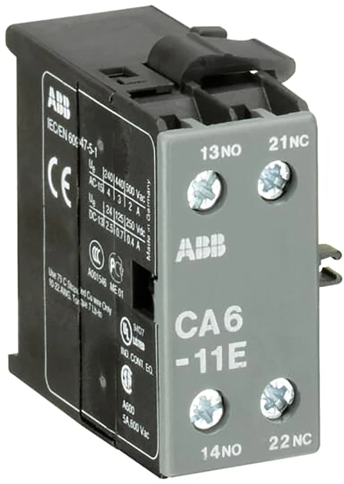 CA6-11E is een hulpcontact voor zijmontage met 2 hulpcontacten en schroefklemmen. |