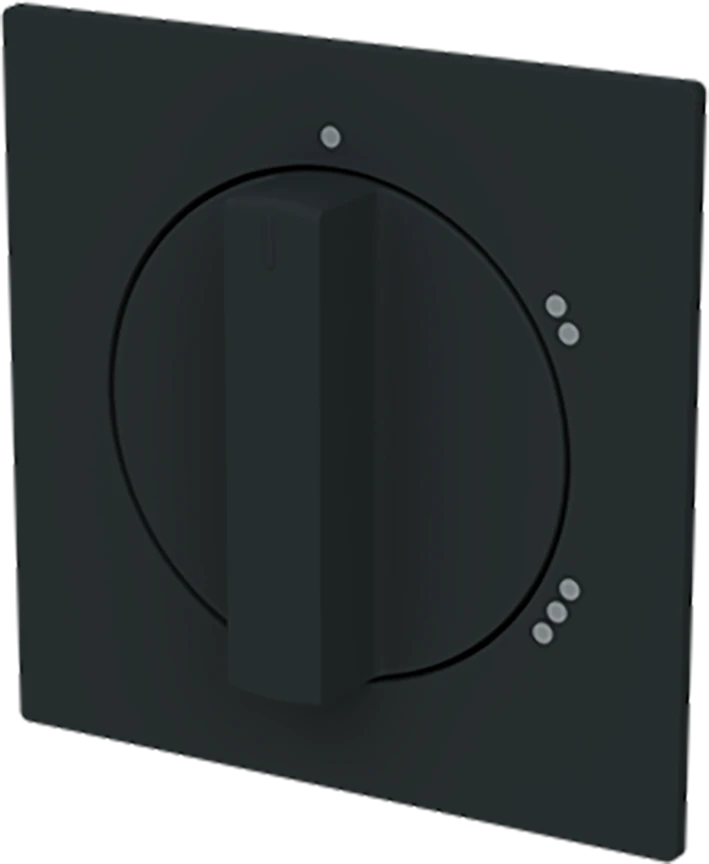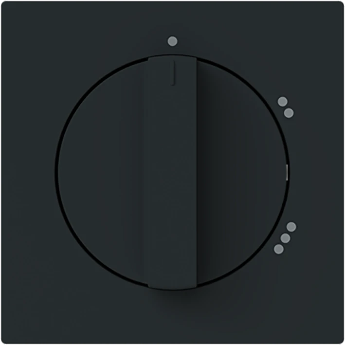 Centraalplaat met draaigreep, met opdruk. Als afdekking voor inbouw 3-standen (ventilator)draaischakelaar. Zonder nulstand. Voor sokkel 2710/1 U. art-matzwart. |
