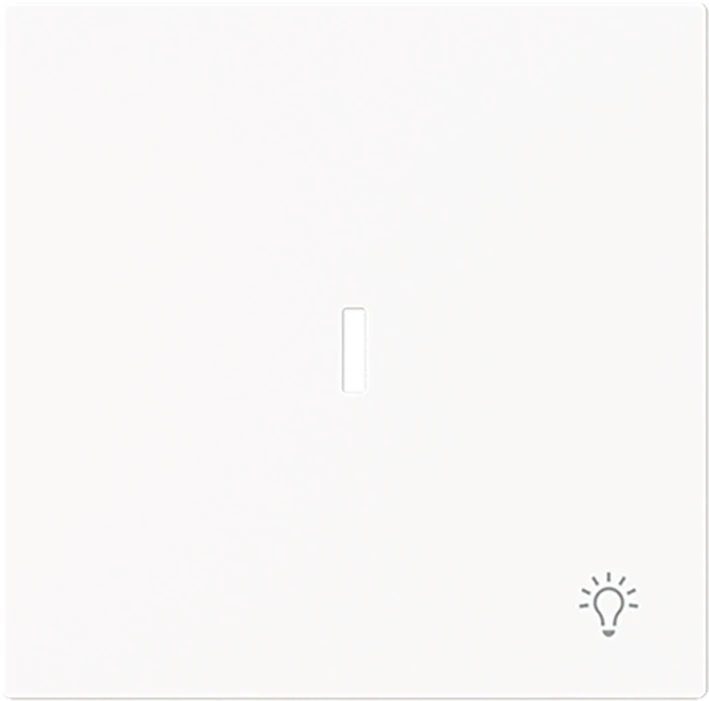 Bedieningswip met opdruk met kleine transparante lens met symbool >Licht<. Als afdekking voor inbouwwisselschakelaar, kruisschakelaar, impulsdrukker en wisselcontroleschakelaar. art-matwit. |