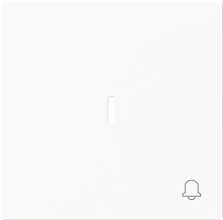 Bedieningswip met opdruk met kleine transparante lens met symbool >Bel<. Als afdekking voor inbouwimpulsdrukker. art-matwit. |