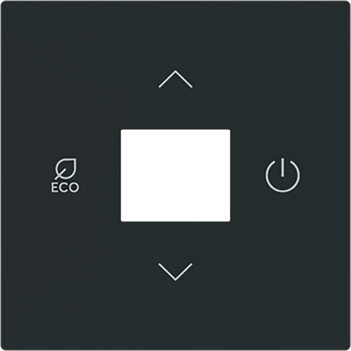 Centraalplaat voor ruimtetemperatuurregelaar of ruimtetemperatuurregelaar met CI2/vochtigheid Als afdekking voor ruimtetemperatuurregelaar met/zonder CO2-/vochtigheidssensor (6109/18 en 6109/28). art-matzwart. |