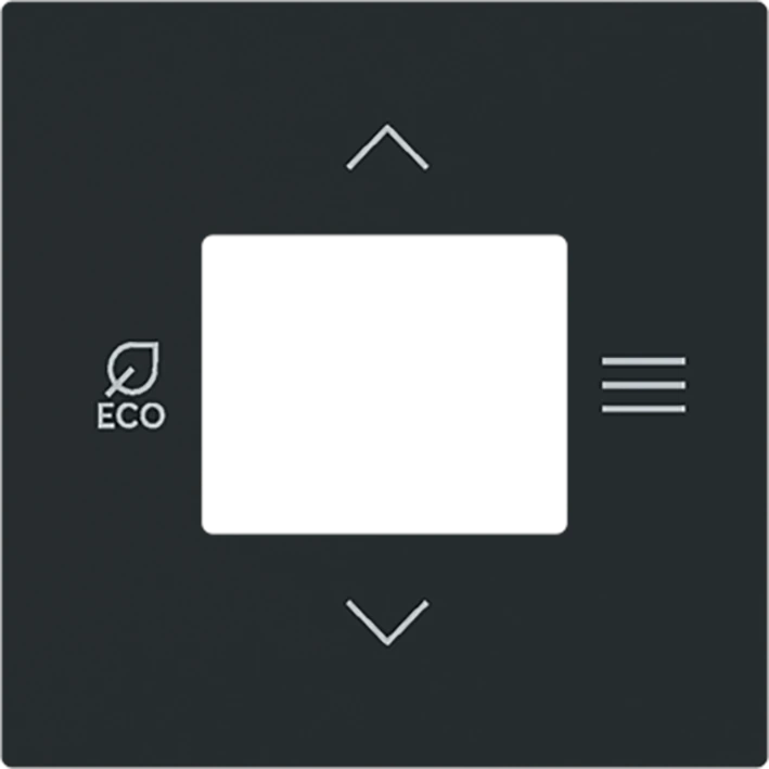 Centraalplaat voor ruimtetemperatuurregelaar of ruimtetemperatuurregelaar met CI2/vochtigheid Als afdekking voor ruimtetemperatuurregelaar met/zonder CO2-/vochtigheidssensor (6109/18 en 6109/28). art-matzwart. |