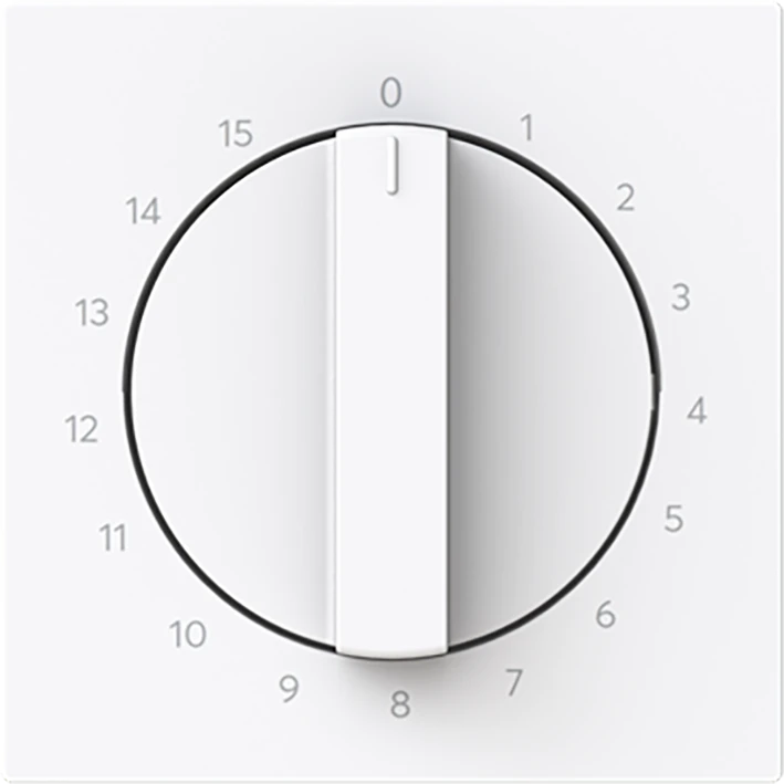 Centraalplaat met draaiknop, met opdruk Voor Busch-tijdschakelkloksokkel (mechanisch) 1070 U. Looptijd: 15 min. art-wit. |
