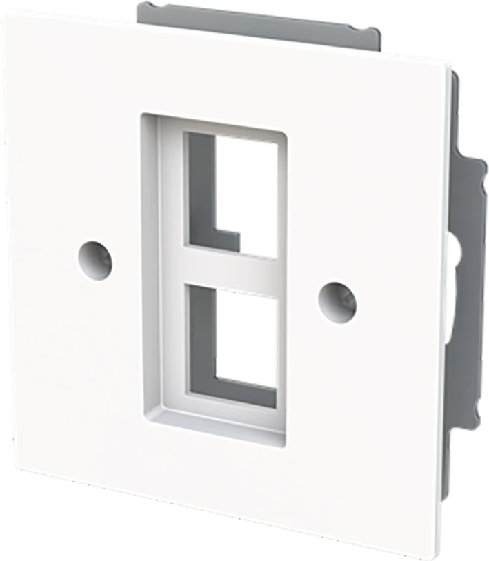 Centraalplaat Voor 2 Modular Jack connectosr. Geschikt voor artikelnr. 0210 en 0211. Zonder bevestigingsklauwtjes. art-wit. |