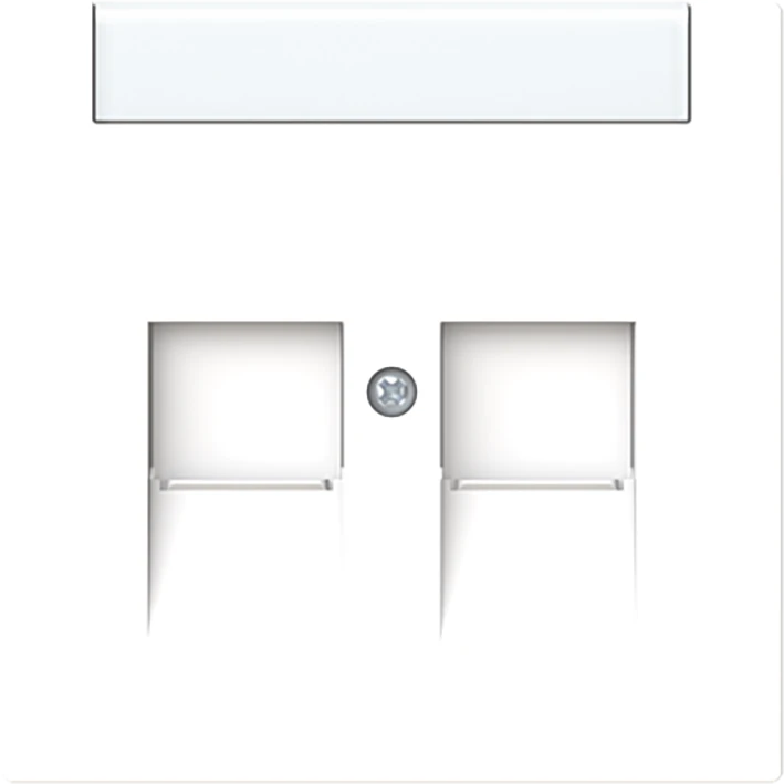 Centraalplaat met tekstveld Voor 2 Modular Jack connectors, met schuifje. Alleen geschikt voor artikelnr. 1810, 1812, 1814, 1816, 1818, 1819 en 1820. Grootte van het tekstveld: 41,5 x 10 mm. Voor bijbehorende Busch-Script-labelsoftware zie www.BUSCH-JAEGER-labelingtool.com. art-matwit. |