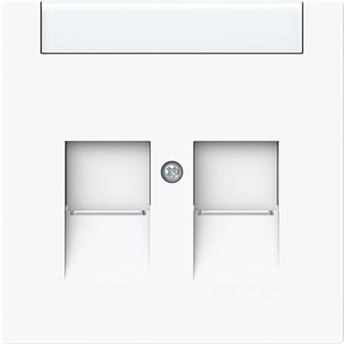 Centraalplaat met tekstveld Voor 2 Modular Jack connectors, met schuifje. Alleen geschikt voor artikelnr. 1810, 1812, 1814, 1816, 1818, 1819 en 1820. Grootte van het tekstveld: 41,5 x 10 mm. Voor bijbehorende Busch-Script-labelsoftware zie www.BUSCH-JAEGER-labelingtool.com. art-wit. |